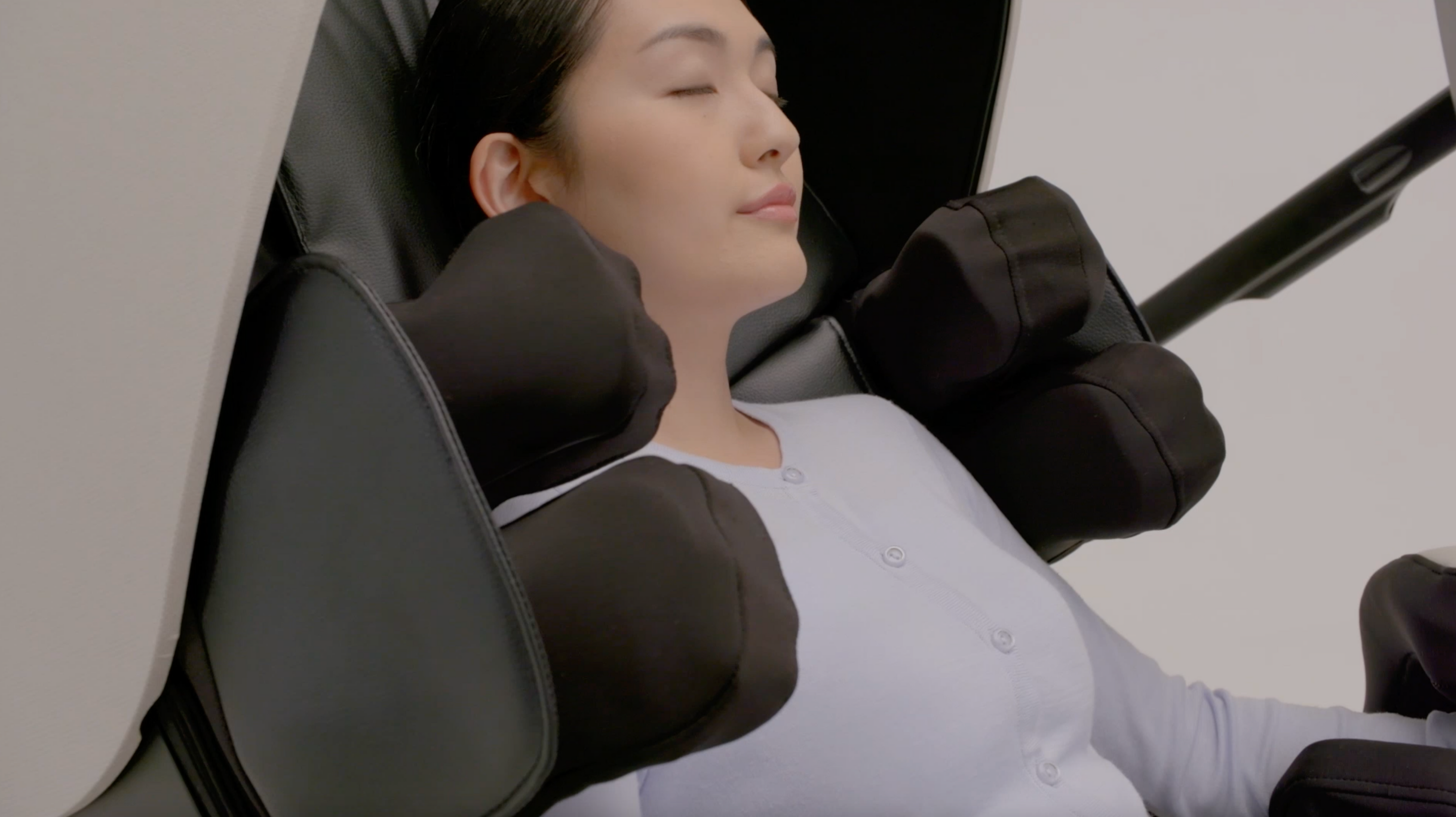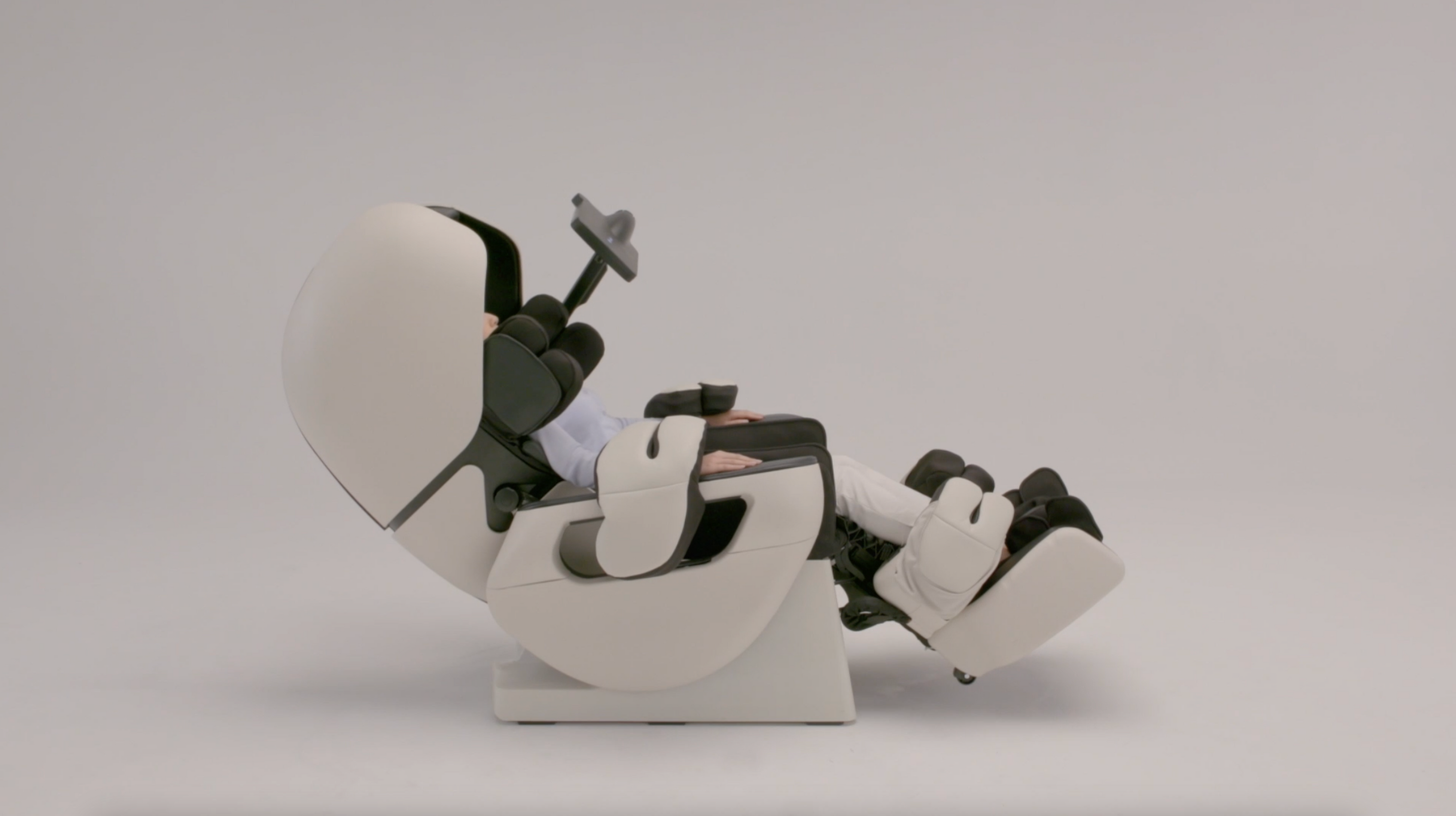 The ROBO massage chair's unique flat-lay design allows for a complete flat position during the massage, distinct from typical 'zero gravity' chairs. This feature enables you to lie down without the need to pivot at the hips or bend your knees, offering a natural, fully relaxed posture. It's perfect for alleviating spinal pressure and enhancing circulation, while also facilitating deeper relaxation and alignment.
